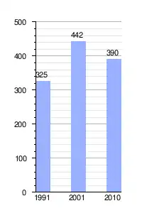 Gráfica de evolución demográfica de Pinchas entre 1991 y 2010 |