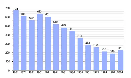 Gráfica de evolución demográfica de Pino d'Asti entre 1861 y 2001 |