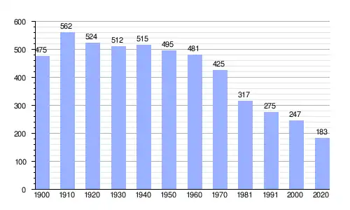 Gráfica de evolución demográfica de Pino del Oro entre 1900 y 2020 |