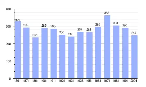 Gráfica de evolución demográfica de Pino sulla Sponda del Lago Maggiore entre 1861 y 2001 |
