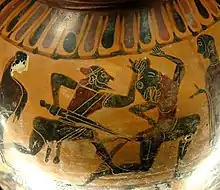 - Boardman, John (1977). Schwarzfigurige Vasen aus Athen. Ein Handbuch (en alemán). Maguncia. p. 41. ISBN 3-8053-0233-9.