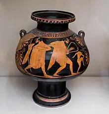 - Robertson, Martin (1992). The Art of Vase-painting in Classical Athens (en inglés). Cambridge: Cambridge University Press. p. 26. ISBN 0-521-330-10-6.