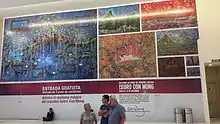 También tendrá importancia la pintura mural de César Valverde Vega, donde predominará el tema femenino y la abstracción figurativa (Constitución, Justicia y Contraloría, mural acrílico). Valverde comienza a pintar en los años 1950 en Europa, donde tuvo contacto con las corrientes artísticas de ese continente, siendo allí donde se gesta su figuración abstracta en las figuras y los paisajes. Sus pinturas tienen características bidimensionales, vinculando figura y fondo con una tonalidad monocromática, utilizando luego un entramado en lugar de la línea fuerte del principio, en sus obras posteriores. A partir de los 1960 se interesa en la figura femenina, que luego será icónica en su arte, y es cuando se incorpora a la técnica mural, cuya obra será vasta.[29]