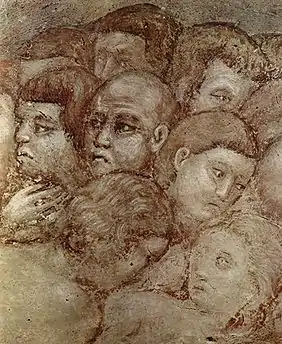 En la Florencia del siglo XIII, Cenni di Pepo, llamado Cimabue (1240-1302) fue pintor, arquitecto y mosaísta que participó en la realización de los mosaicos de la cúpula del Baptisterio. En sus primeros años de actividad pinta el crucifijo de San Domenico de Arezzo donde mediante un juego de luces y sombras logra dar volumen al cuerpo así como una violenta expresión de dolor al rostro. Posteriormente viajó a Roma (1272) donde tomó contacto con el mundo clásico, con la pintura paleocristiana y románica y conoció a Pietro Cavallini. Este conjunto de influencias contribuyeron a liberarlo de los cánones y grafismos bizantinos de los cuales se muestra dependiente en todas sus obras.