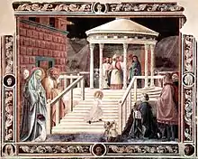 La Virgen María, reverenciada por la Iglesia católica en todo el mundo, fue particularmente adorada en Florencia. Había una imagen milagrosa de ella en una columna en el mercado de maíz, también la Catedral de Santa María del Fiore y la iglesia de Santa María Novella fueron nombradas en su honor. La imagen milagrosa del mercado fue destruida por un incendio, pero fue reemplazada por una nueva en la década de 1330 por Bernardo Daddi.