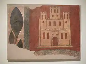 Otros fragmentos conservados en el MNAC, son los que se aprecian, en primer lugar un castillo enmarcado por una estilización vegetal en su parte izquierda y que estaba situado sobre la puerta del muro norte y otro, en la enjuta del arco de la ventana que un animal fantástico de ave con cabeza de serpiente con cuernos. De la pared de levante hay un fragmento que representa la figura de cuadrúpedo enmarcado por arquitecturas parcialmente perdidas y de esta misma parte mural la figura de un pájaro perteneciente a la enjuta de la derecha. Por último el sexto fragmento perteneciente al museo barcelonés corresponde al friso inferior izquierdo donde se pueden apreciar un par de simios.[4] Entraron en el museo por adquisición en el año 1943.[5]