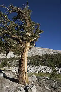 - Esta obra contiene una traducción derivada de «Foxtail Pine» de Wikipedia en inglés, publicada por sus editores bajo la Licencia de documentación libre de GNU y la Licencia Creative Commons Atribución-CompartirIgual 3.0 Unported.