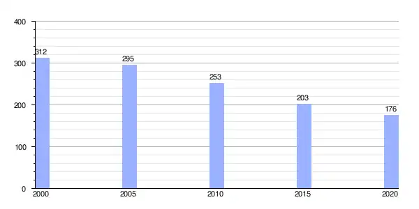Gráfica de evolución demográfica de Piquín entre 2000 y 2020 |