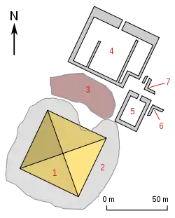 ![]() Las ruinas de la pirámide de Amosis (primer plano) | ||