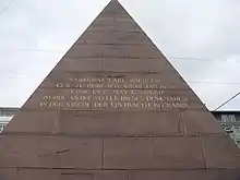La pirámide de Karlsruhe (en alemán, Karlsruher Pyramide) es una pirámide monumental de piedra arenisca roja, ubicada en el centro de la plaza del mercado de Karlsruhe, Alemania.[1] El monumento, erigido en los años 1823-1825 sobre la cripta del fundador de la ciudad, el margrave Carlos III Guillermo, es un conocido símbolo de la ciudad, considerado el segundo emblema de la misma tras el diseño de la ciudad en forma de abanico plegable.[1][2]