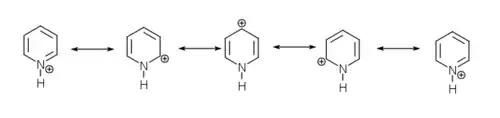 El piridinio posee un papel importante en la acilación de Friedel-Crafts. Cuando se encuentra en presencia de piridina, forma un complejo con el ion acilio (electrófilo), favoreciendo la reacción. El pKa de la cupla piridinio / piridina es de 5,23.