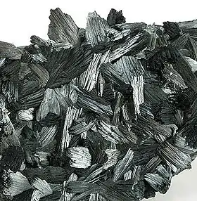 ![]() Cristales de pirolusita procedentes de Las Cruces (Nuevo México, EE.UU.) (Campo de visión: 9,2 x 4,6 x 2,1 cm) | ||