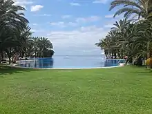 Una piscina, alberca o pileta infinita es una piscina que produce un efecto visual o ilusión óptica de que el agua se extiende hasta el horizonte, o desaparece, o se extiende hasta el infinito, de ahí su nombre. Este tipo de piscina tiene un coste elevado, ya que requiere un diseño de arquitectura e ingeniería mucho más complejo que una piscina tradicional. [1]
