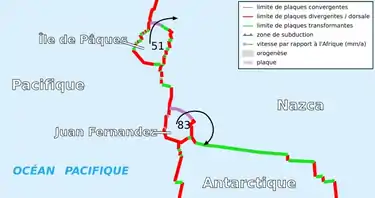 Está situada en el este del océano Pacífico y ocupa una pequeña superficie de dicho océano. Está en contacto con las placas del Pacífico, de Nazca y Antártica.