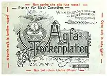 - Esta obra contiene una traducción derivada de «Plaque photographique» de Wikipedia en francés, concretamente de esta versión, publicada por sus editores bajo la Licencia de documentación libre de GNU y la Licencia Creative Commons Atribución-CompartirIgual 3.0 Unported.