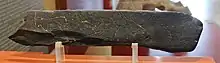 Se trata de una pizarra paleozoica negra, de forma rectangular, de 36,5 cm de largo, 7,6 cm de ancho y un grosor de 1,2 cm que en origen debió ser más larga, puesto que se puede apreciar su fractura en uno de los extremos.