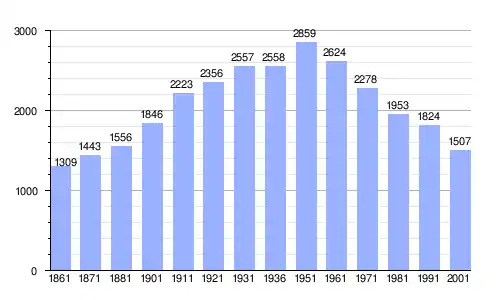 Gráfica de evolución demográfica de Placanica entre 1861 y 2001 |