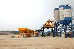 - Plantas de mezclado: para la producción de concreto u hormigón amasado.[1] Incluyen una amasadora, que es la encargada de homogeneizar la mezcla de concreto u hormigón.