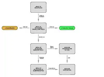 Una planta de selección automatizada típica presenta una serie de etapas de proceso localizadas en áreas: