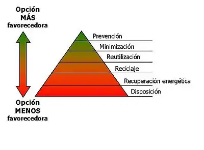 La citada ley, en su artículo 8, establece la jerarquía de los residuos como principio fundamental de su política.
