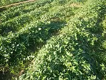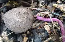 Los ñames (Dioscorea spp.) son un grupo muy grande de plantas nativas de todas las regiones tropicales y templadas cálidas del mundo. Varias especies de ñames fueron domesticadas y cultivadas de forma independiente dentro de la isla del sudeste asiático y Nueva Guinea, debido a sus tubérculos almidonados. Este grupo incluye al ube o ñame acuático (Dioscorea alata), al ñame volador o papa voladora (Dioscorea bulbifera), al ñame indio de tres hojas (Dioscorea hispida), el ñame menor (Dioscorea esculenta), el ñame del Pacífico o ñame común (Dioscorea nummularia), el ñame de cinco hojas (Dioscorea pentaphylla) y el ñame lápiz (Dioscorea transversa).[144] Entre estos, D. alata y D. esculenta fueron las únicas especies cultivadas y comidas regularmente, mientras que el resto generalmente se consideraban como alimentos de hambruna, debido a sus niveles más altos de la toxina dioscorina, lo que requería que se prepararan correctamente antes del consumo.[145]