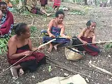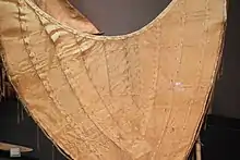 La tela de corteza se usó principalmente para la ropa entre los antiguos austronesios y se hace tradicionalmente con piedra característica o batidores de madera que se encuentran entre los artefactos más comunes encontrados en los sitios arqueológicos austronesios. Se han considerado numerosos restos arqueológicos de batidores de tela de corteza en el sur de China como evidencia de que las tierras natales austronesias anteriores a Taiwán estaban ubicadas en la región antes de la expansión hacia el sur de la dinastía Han, particularmente alrededor del delta del río de las Perlas. Los restos más antiguos son del sitio Dingmo en Guangxi, que data de alrededor de 7,900 BP[45] La tela de corteza siguió siendo una fuente importante de telas para la ropa en Melanesia, Polinesia y algunas partes de Indonesia. Sin embargo, ha sido reemplazado principalmente por ropa de fibra tejida en la mayor parte de la isla del sudeste asiático y Micronesia.[17]