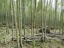 Varias especie de bambú (subfamilia Bambusoideae) se encuentran en toda la isla del sudeste de Asia, el sudeste de Asia continental, en el este y sur de Asia. En las regiones austronesias, los diferentes tipos de bambúes tienen nombres diferentes, así como también los productos hechos a partir de los mismos. Se utilizan de diversas maneras como materiales de construcción, equipos de pesca, instrumentos musicales, cuchillos, recipientes para agua y comida, etc. Los brotes de bambú también son una fuente alimentaria en el Sudeste asiático. Los colonos austronesios transportaron algunas especies de bambú cuando colonizaron las islas del Pacífico. Estas especies incluyen el ʻohe (Schizostachyum glaucifolium), el bambú común (Bambusa vulgaris), y el bambú de la India (Bambusa bambos).[39][40]