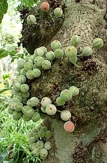 El tamanu o kamani (Calophyllum inophyllum) es un árbol maderero nativo de Asia tropical. Es conocido por su capacidad de crecer a tamaños masivos en playas arenosas o rocosas de hábitats insulares y costeros, así como por su hábito de extender grandes troncos arqueados sobre el agua, donde sus semillas se dispersan a través de las corrientes.[47][48] Debido a estas características, el tamanu es de suma importancia para la construcción naval tradicional de las canoas austronesias más grandes, y estas poblaciones fueron transportadas con estos navíos mientras migraban a Oceanía y Madagascar.
