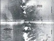 Asociado con los escarpes de deslizamiento, se encuentran también escarpes erosionales que descubren hasta 20 m de sedimentos, especialmente en el comienzo del deslizamiento de los escarpes (Fig. 2).