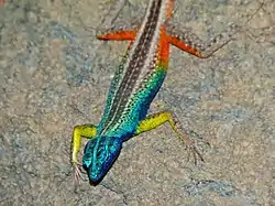 - Stapley J, Whiting MJ (22 de junio de 2006). «Ultraviolet signals fighting ability in a lizard». Biology Letters 2 (2): 169-172. PMC 1618919. PMID 17148355. doi:10.1098/rsbl.2005.0419.