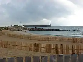 ![]() La playa Chica desde la pasarela a la isla de Las Palomas. | ||