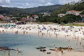 Playa en forma rectilínea y semicurva en un extremo, ubicada en un entorno urbano de baja densidad de población, mayoritariamente flotante o estacional. Pertenece al municipio de Sangenjo. Limitada en el extremo este por la pequeña Cala dos Mortos, con acceso en bajamar y Punta Festiñanzo, con hermosas vistas de la ría de Pontevedra. Compuesta por arena blanca y fina. Recogida de los vientos, con aguas tranquilas propicias para disfrutar de los deportes acuáticos: esquí náutico, vela, motonáutica, windsurf (con límite a la playa de 200 metros). Zona de fondeo de embarcaciones.
