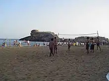 Es una playa de arenas finas y doradas sin piedras. Es una de las más concurridas y está galardonada con la Bandera Azul. También es una de las más seguras puesto que por esa zona no hay grandes corrientes marinas y no hay riesgo de ser llevado hasta mar abierto. En uno de sus extremos hay una zona en la que no está permitido el baño puesto que en ella pueden formarse remolinos.