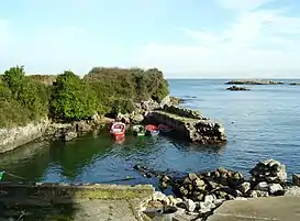 Está situada muy cerca de la playa de Aramal, a la que se une cuando hay bajamar, pudiéndose pasar en ese momento a la isla del Carmen desde ambas playas.[1]