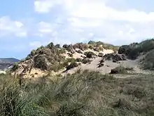 Se trata de zona de dunas de menos de una hectárea aunque en sus comienzos se trataba de la mayor de Asturias pero la industrialización (con la construcción de empresas como Cristalería Española o Asturiana de Zinc y el crecimiento urbanístico de Salinas, Raíces y San Juan dejó su tamaño reducido al de ahora desde el kilómetro que antes casi medía, entre los acantilados de Pinos Altos y el mar. Presenta dos zonas bien diferenciadas, la primera es un muro dunar formado por dunas blancas que en algunas zonas alcanza los 15 metros de alto. Tras este muro se encuentra el resto de la zona dunar con dunas grises.