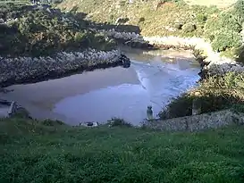 ![]() Playa Guadamía con marea baja, desembocadura del río Guadamía. | ||