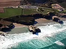 La playa de Las Catedrales (en gallego, praia das Catedrais) es el nombre turístico de la playa de Aguas Santas (en gallego, praia de Augas Santas), situada en el municipio gallego de Ribadeo (parroquia de Devesa), en la costa de la provincia de Lugo, España, sobre el mar Cantábrico.[1] Está a unos diez kilómetros al oeste de la localidad de Ribadeo. Es conocida por este nombre debido a la apariencia de sus acantilados. Está declarada monumento natural por la Consejería de Medio Ambiente de la Junta de Galicia.