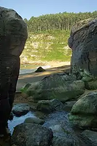 La playa está flanqueada por hermosos acantilados e inmersa en plena Costa del Jurásico Asturiano, tiene una longitud de 200 m, accesos rodados y está situada en un entorno rural. está catalogada como LIC.[1]