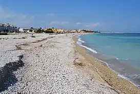 La Punta de la Almadraba divide esta larga en dos ensenadas de aguas transparentes. El viento de Lebeche de las tardes de verano atrae a los deportistas del windsurf.