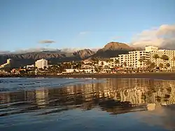 ![]() En primer término, Los Cristianos. Las Américas se encuentra tras la montaña de Chayofita. | ||