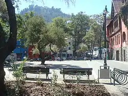 La Plaza Camilo Mori es parte de ese proceso y en 1923 toma su forma característica con la construcción de la Casa Roja o Castillo Lehuedé; declarado patrimonio cultural. Desde 1960 el sector de plaza toma su "vocación" con la casa de Pablo Neruda (iniciada en 1953) y el anexamiento definitivo con Providencia. Con el tiempo se ha ido marcando la división del Barrio Bellavista entre una Bellavista poniente, perteneciente a Recoleta, pauperizada y recuperando elementos populares a través de la colonización simbólica y física de clases más bajas, y la Bellavista oriente, perteneciente a Providencia, con un perfil bohemio pero sobrio, cultural y de espacios bien cuidados. En este último sector está la Plaza Camilo Mori, protegida entre una serie de patrimonios culturales.