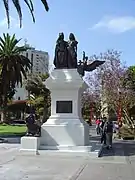 - La Estatua a España y América, donada por la colonia española. Enrique Granada y Zacarías Gómez recibieron el encargo de la colonia de instalar un monumento como regalo a la ciudad, para cuya construcción eligieron al arquitecto Jaime Pedreny. El monumento rinde tributo a España y a América, representadas por dos figuras femeninas situadas en la parte superior del conjunto escultórico. Este se completa con un cóndor que sostiene un escudo de Chile y un león que sostiene un escudo de España.[2]