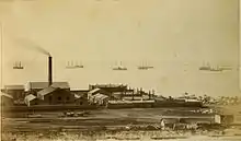Entre 1853 y 1912, funcionó en este lugar una fábrica de gas que abastecía a la ciudad. Foto de Gonnet, 1864.