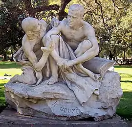 - La duda: Se encuentra a unos diez metros de la vereda de la Avenida Santa Fe, donde ésta se interseca con la calle Maipú. Realizada en mármol de Carrara por el artista francés Cordier muestra a un joven creyente que se encuentra junto a su Biblia abierta, mientras un anciano a su lado parece cuestionarlo.