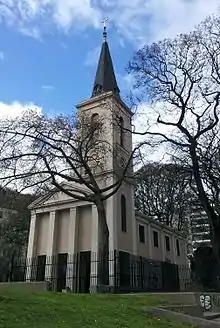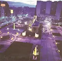 Se encuentra en una zona dominada por distintas dependencias de la Universidad de Buenos Aires (UBA). Por el lado sur, se encuentra la sede de la Facultad de Ciencias Económicas y su nuevo edificio anexo (inaugurado el 9 de marzo de 2011). Por el oeste, el gran edificio del Hospital de Clínicas José de San Martín, hospital escuela de los alumnos de la UBA, de arquitectura racionalista monumental con pabellones típica de los años 1940. Y por el norte, el sólido elevado edificio escalonado de estilo internacional con detalles art deco de la Facultad de Medicina (1937).