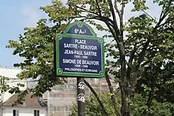 Este lugar toma el nombre de los filosofes Jean-Paul Sartre (1905-1980) y Simone de Beauvoir (1908-1986).[2] Frecuentaron el café Les Deux Magots,[1] que da a la plaza, y viviaron muy cerca, al número 42 de la calle Bonaparte.[3]