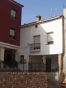 Situado en el cerramiento sur llama la atención también un edificio rehabilitado recientemente que posee un balcón corrido de madera y una amplia cornisa que sobresale en igual anchura que el mencionado balcón. Tiene dos pisos y sus muros son de mampostería aunque se encuentran revocados y pintados de blanco.