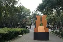 El centro de la plaza tiene una fuente con una copia de la escultura David, de Miguel Ángel, hecha de bronce y fue colocada allí en 1976 como parte de un programa de remodelación del Departamento del Distrito Federal.
