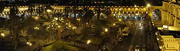![]() Vista de la Catedral de Arequipa al lado norte de la Plaza de Armas. | ||