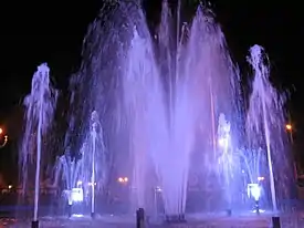 Es una pileta circular, ubicado en el lado este de la plaza. El espectáculo consiste en secuencias coordinadas de chorros de agua que alcanza unos diez metros, adornado de luces de colores, principalmente de lila que le da un brillo espectacular.